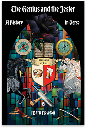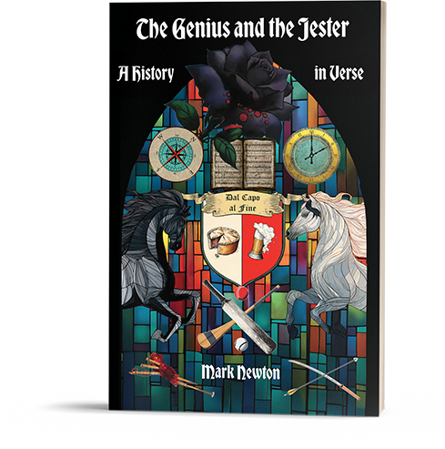 “The Genius and the Jester, Crossed paths by chance one day. They knew each other from the court, But never had parleyed.” Four lines, two rhymes, that introduce, By way of a quatrain, Two characters who asked of me, Just who on earth were they? And what was it that they should do? What was their history? Where would they go, who would they meet? They seemed to say to me. So, if you have the interest, And then a little time, Their unexpected adventure, You’ll find here told in rhyme. For the world a new history, Which I commend to you; Hoping it is interesting Enough to see it through.